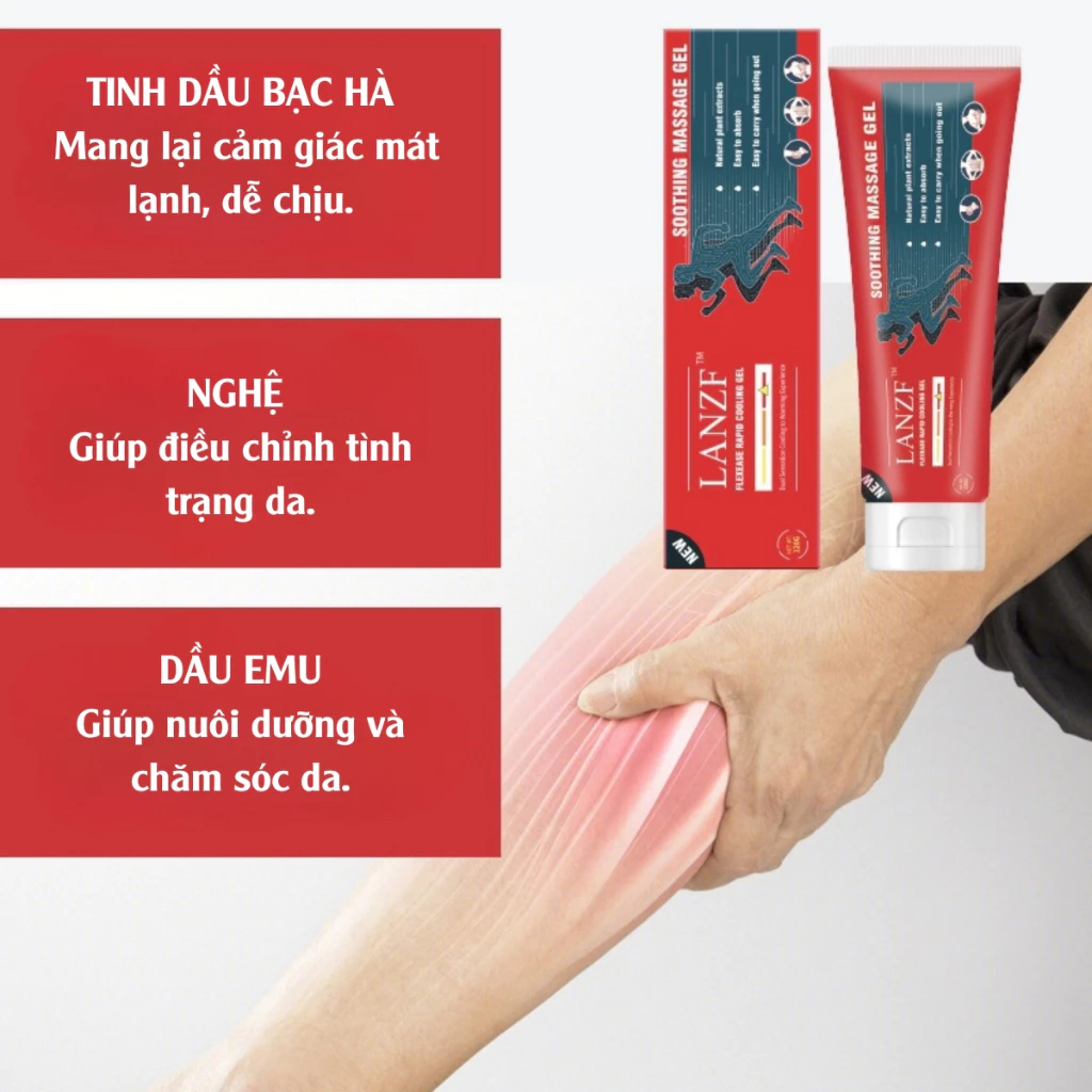 Gel LANZF làm dịu nhanh, thích hợp cho việc phục hồi đầu gối, thắt lưng, cổ, tay và chân