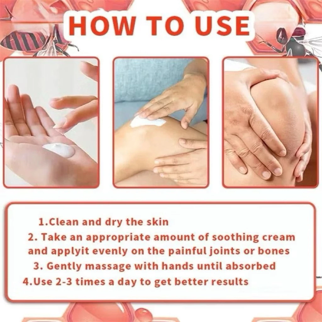 Thoa đều lên vùng da cần thư giãn và massage nhẹ nhàng từ 3–5 phút. Có thể dùng 2–3 lần/ngày, đặc biệt sau khi vận động hoặc làm việc nặng.