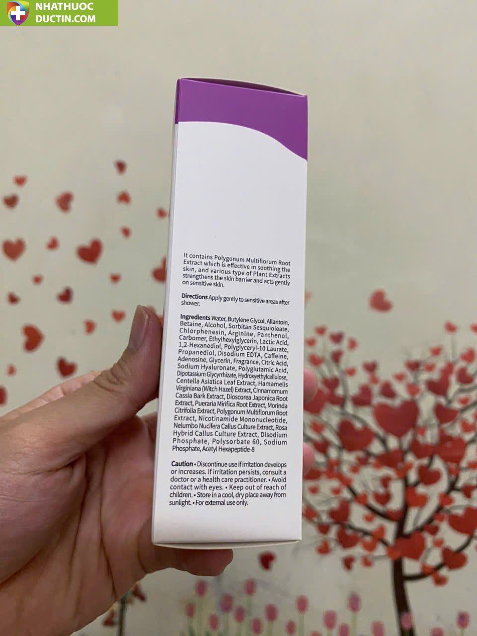 Dưỡng vùng âm đạo: Với Axit amin, các yếu tố tăng trưởng như Peptide, Exosome, NMN giúp lưu thông máu đến cô bé, sửa chữa và tăng sinh tế bào giúp làm dày niêm mạc bên trong và bên ngoài âm đạo, ngoài ra Acid Latic và Acit Citric giúp cân bằng hệ vi sinh và pH âm đạo từ đó ngăn ngừa viêm nhiễm nấm ngứa