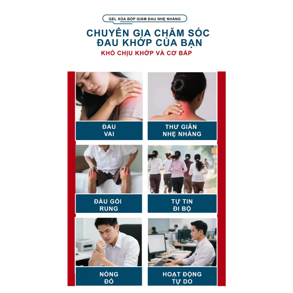 – Giảm đau khớp hiệu quả: Gel Massage Lanzf Chondroitin giúp làm dịu các cơn đau và nhức mỏi ở khớp gối, vai, lưng và tay chân.