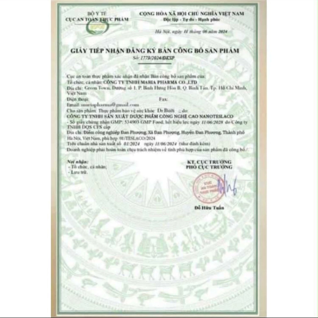 1. Tên sản phẩm: Thực phẩm bảo vệ sức khỏe TANAPORN