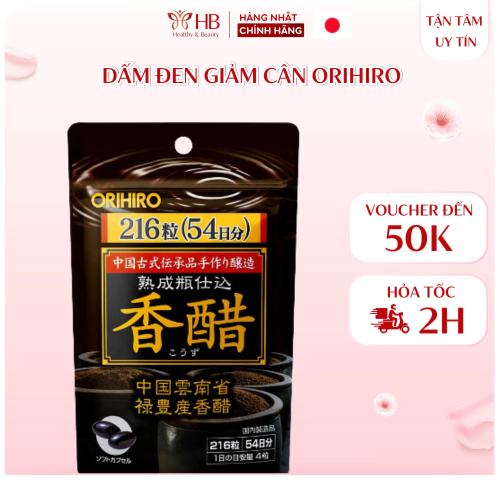 Giấm đen giảm cân Nhật Bản Orihiro túi 216 viên, viên uống giấm đen Orihiro giảm béo