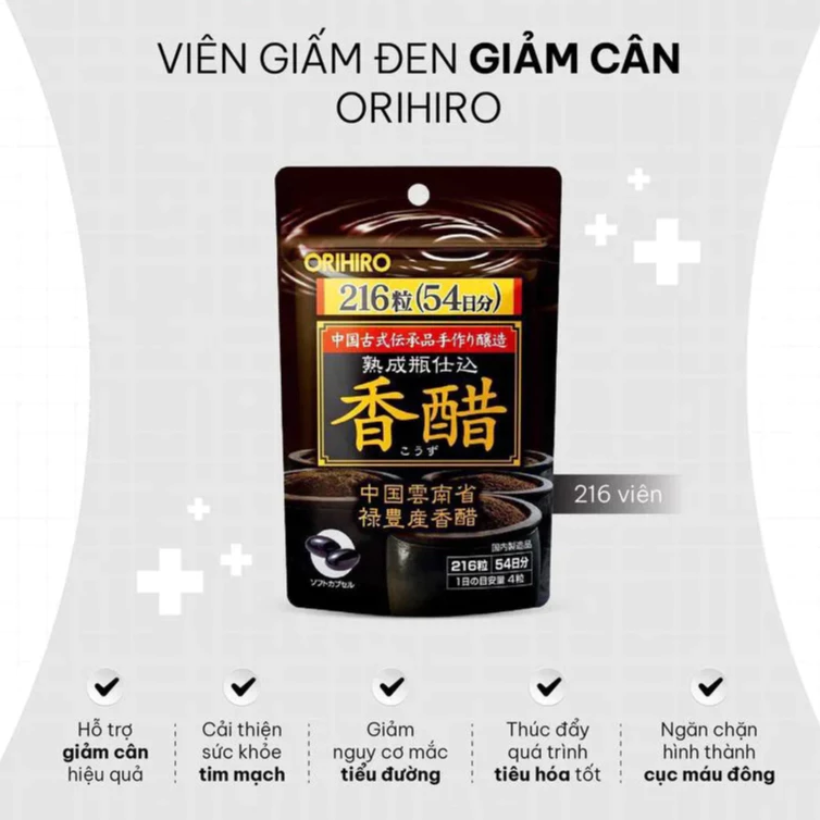 Đánh giá Giấm đen giảm cân Nhật Bản Orihiro túi 216 viên, viên uống giấm đen Orihiro giảm béo