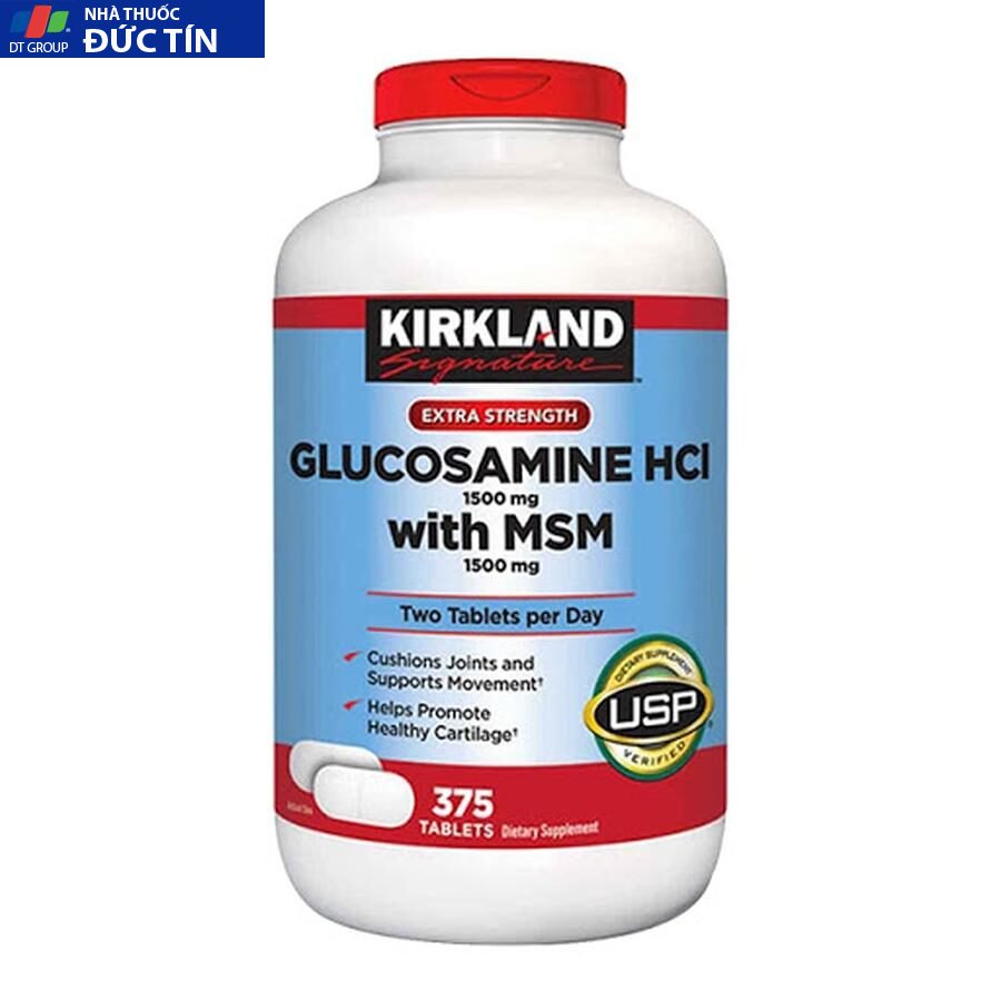 Glucosamine HCL 1500mg Kirkland with MSM 1500mg hộp 375 viên nắp đỏ (mẫu mới)