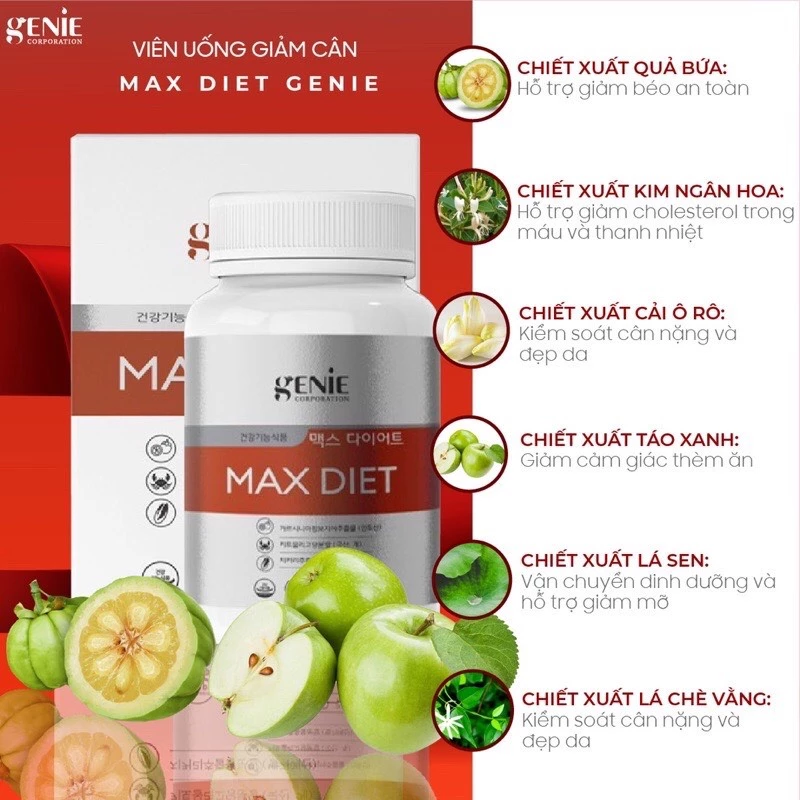 ✅ Thông Tin Sản Phẩm Viên Uống Giảm Cân MAX DIET GENIE Hàn Quốc:
