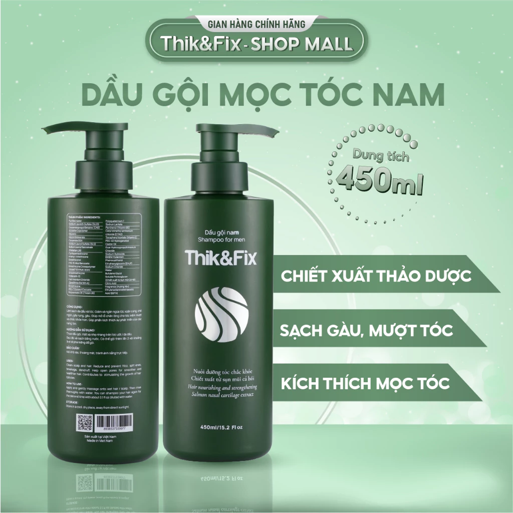 Đánh giá [HÀNG CHÍNH HÃNG] Dầu gội mọc tóc dành cho Nam Thik&Fix – Sạch gàu, loại bỏ bã nhờn, dưỡng tóc chắc khoẻ