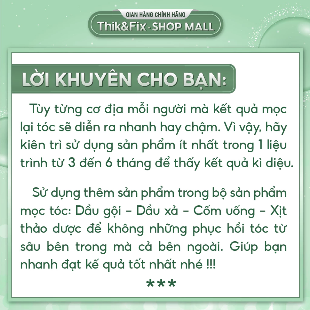 Đánh giá [HÀNG CHÍNH HÃNG] Xịt mọc tóc thảo dược Thik&Fix – Dưỡng tóc chuyên sâu, giảm gãy rụng