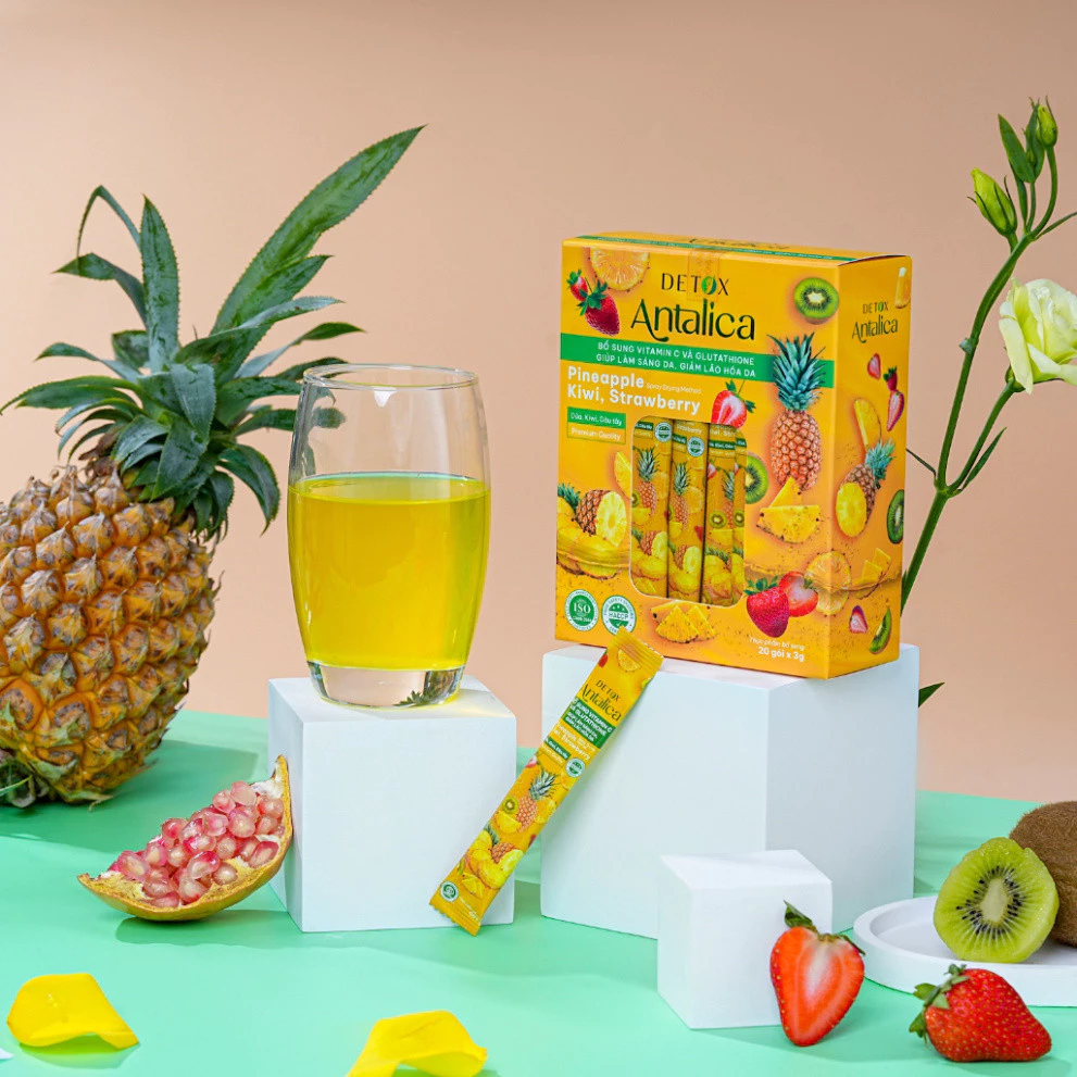 Đánh giá [HÀNG MỚI VỀ] Detox Dứa Thơm Antalica Bổ Sung Glutathione Và VitaminC, Thơm Ngon Hộp, 20 Gói