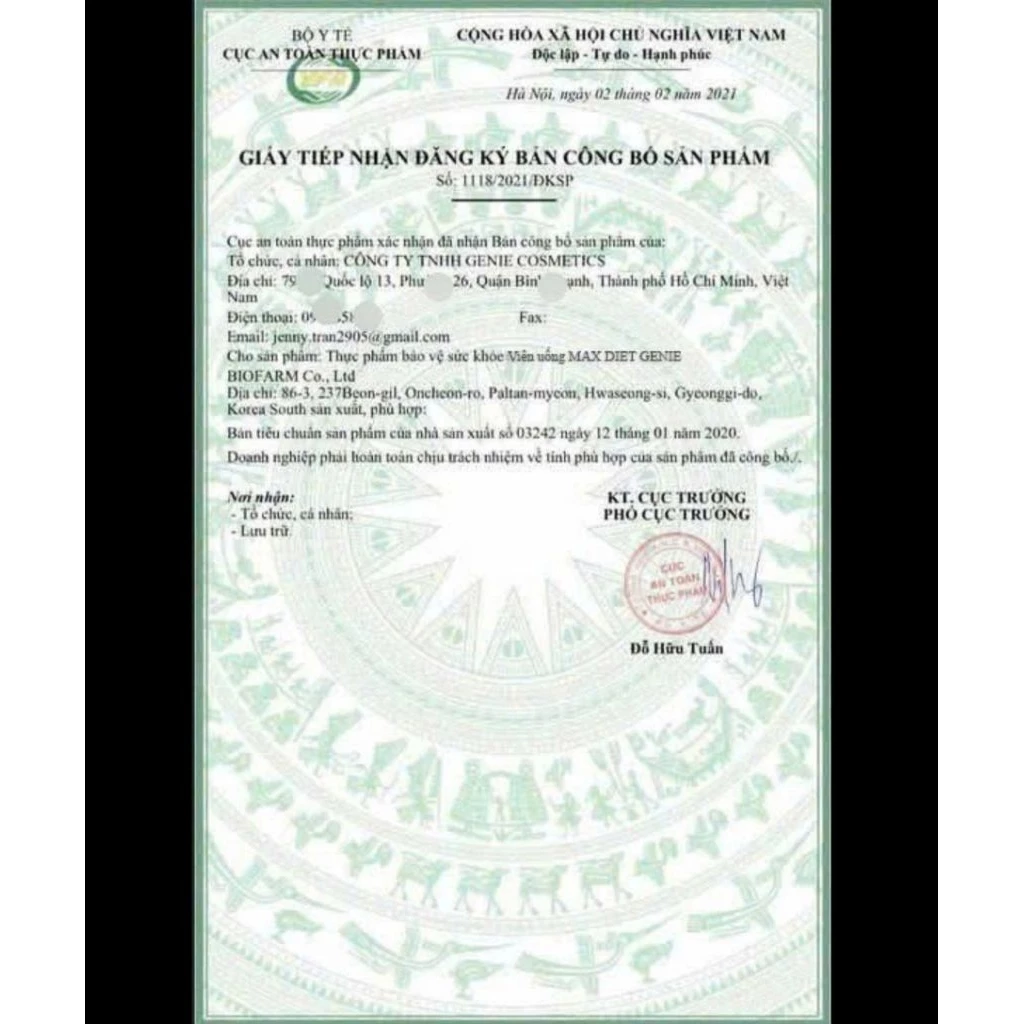 HỘP 60 VIÊN GIẢM CÂN MAX DIET GENIE CHÍNH HÃNG