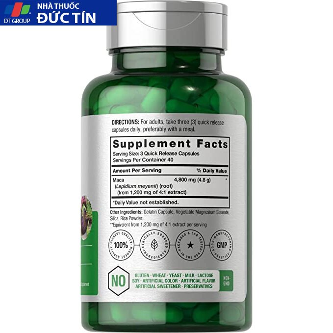 – Viên uống maca là một chế phẩm được chiết xuất từ rễ cây maca hay còn gọi là sâm maca hay maca Peru.Viên uống này được bào chế từ các loại maca khác nhau có trong tự nhiên như maca đỏ, maca đen hay maca vàng, nó được sử dụng như một thực phẩm bổ sung vì nhiều đặ.c tí.nh có lợi của nó đối với sức khỏe con người.
