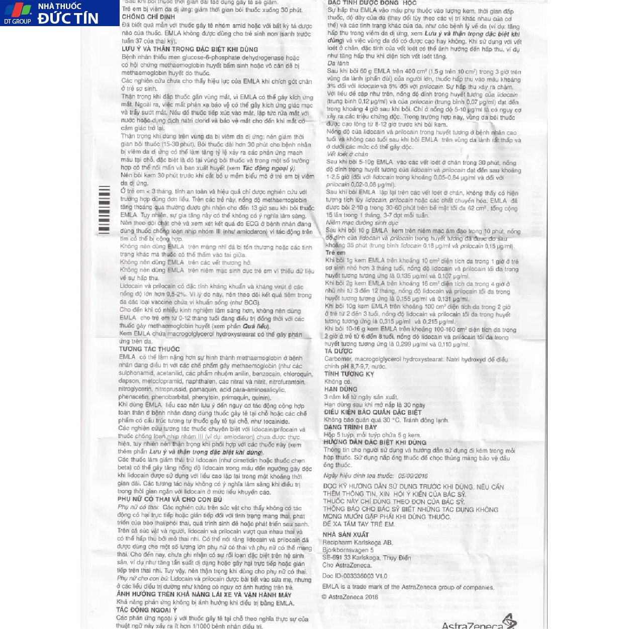 Kem gây tê Emla 5% có hạn sử dụng là 3 năm kể từ ngày sản xuất. Hạn dùng sau khi mở nắp là 30 ngày