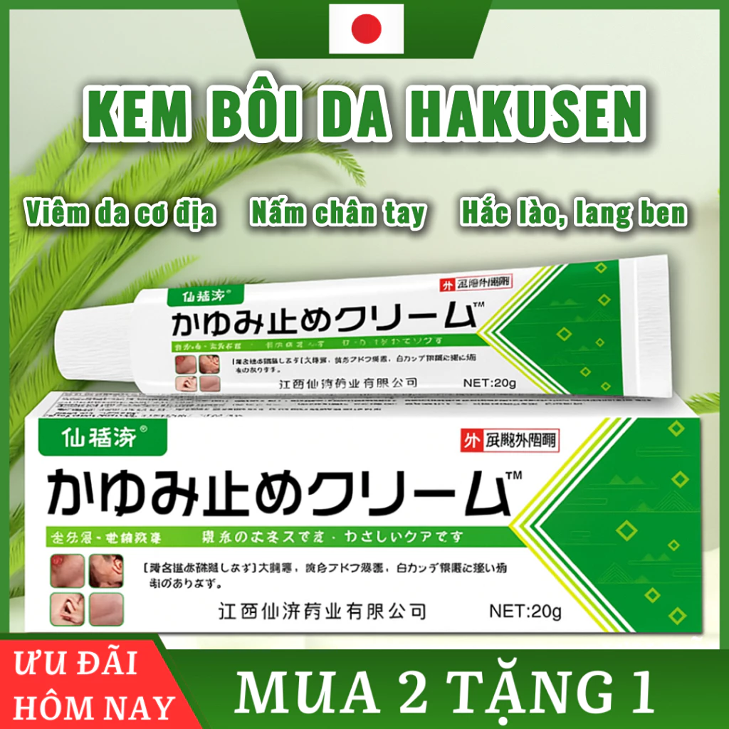 Giảm ngứa, tái tạo da, làm dịu viêm da cơ địa, chàm, á sừng, tổ đỉa với kem bôi da Hakusen 20g
