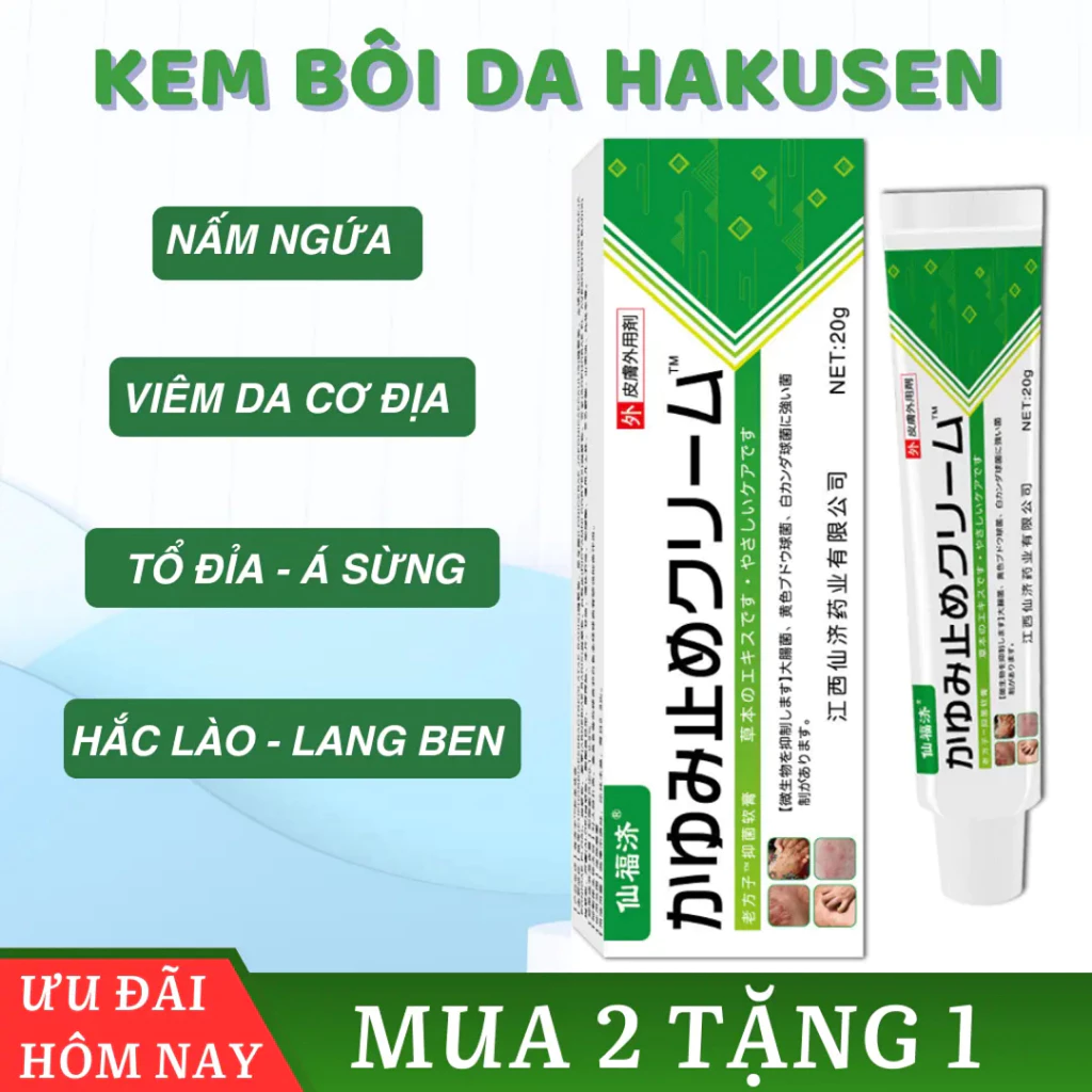 Kem bôi nấm ngứa Hakusen á sừng, vảy nến, tổ đỉa, hắc lào trọng lượng 20gr