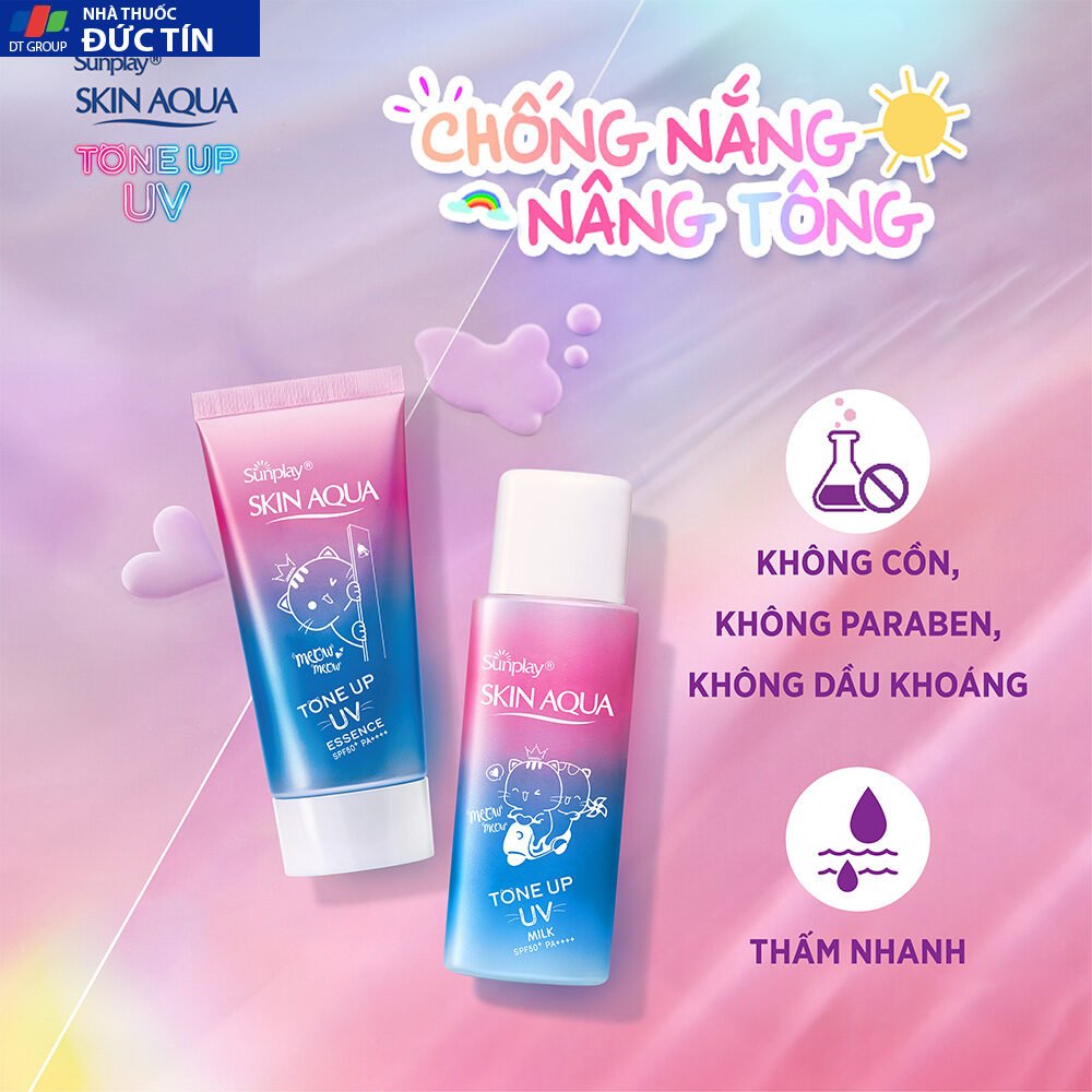 – Chỉ số SPF 50, PA++++ trong kem chống nắng nâng tông Skin Aqua Tone Up sẽ bảo vệ làn da tối ưu khỏi các tác hại của ánh nắng mặt trời như tia tử ngoại, bức xạ mặt trời và các tác nhân gây hại khác, ngăn ngừa sự hình thành đốm nâu, sạm nám, ức chế sản sinh Melanin, giảm thiểu lão hóa da và hạn chế nguy cơ ung thư da.