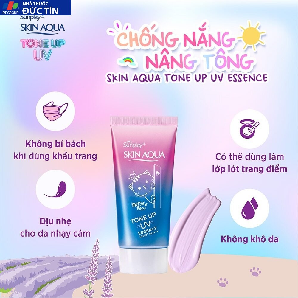 1- Tinh chất chống nắng nâng tông dành cho mọi loại da Sunplay Skin Aqua Tone Up UV Essence Lavender SPF50+ PA++++ (50g)