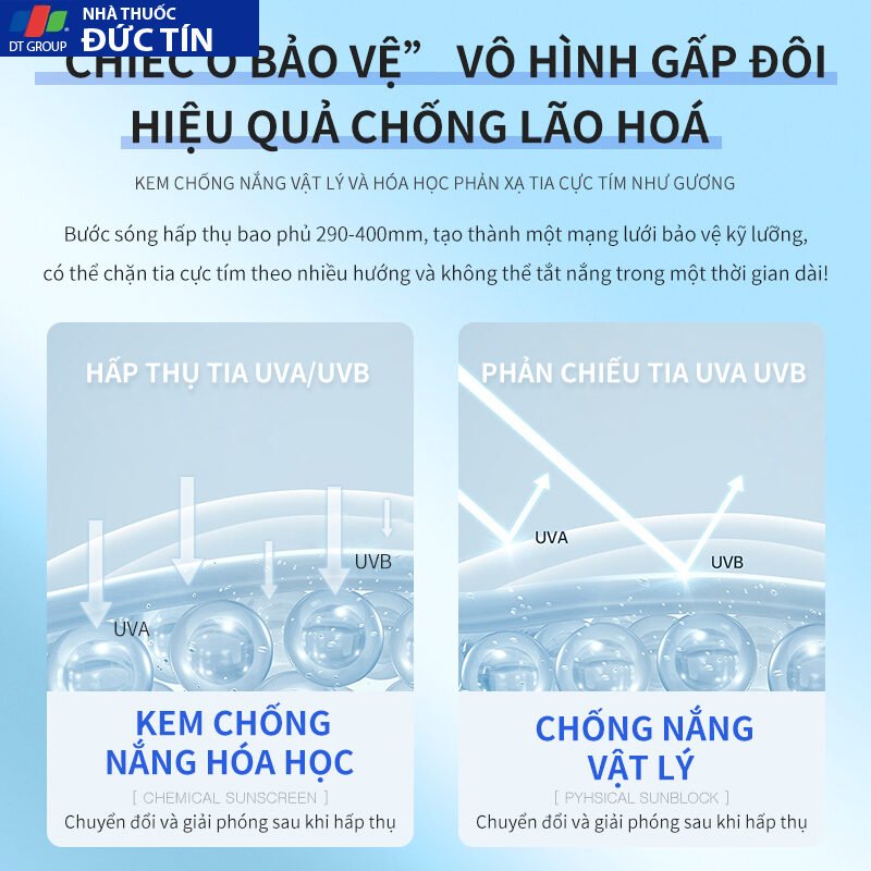 2. Có phổ rộng SPF 50+ bảo vệ tia UVA / UVB chống lại ung thư da, lão hóa sớm và các đốm đen do cháy nắng
