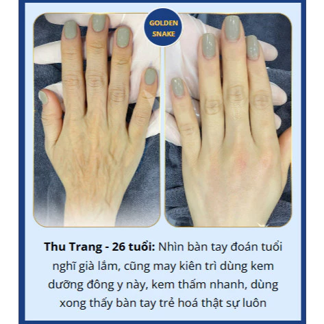 Hashtags: #KemDuongTay #GoldenSnake #KemDongY #TinhDauRan #KemDuongDaTay #KemDuongDa #NuoiDuongDa #DuongAmDaTay #KhongNhanDinh #ChongLaoHoa #ChongSanChac #KemTriNhaoDa #KemTaoCollagen #DuongDaTayChinhHang #LamDepDaTay #KemLamMinDa