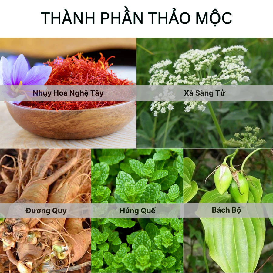 – Chiết xuất tự dược liệu tự nhiên giúp giảm sắc tố da như nhụy hoa Nghệ Tây Saffaron, Hùng Quế, Mã Đề, Hoàng Cầm, Bài Hương, vitamin b12, vitamin b15…