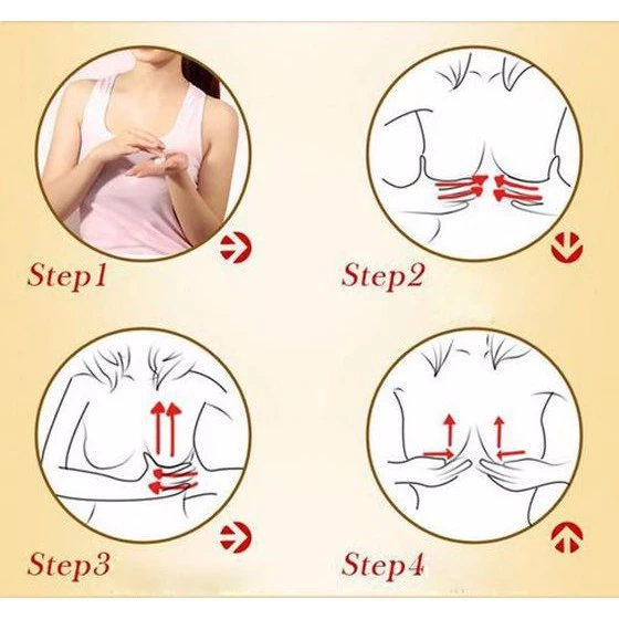 • Bước 2: Dùng 2 tay Massage ngực theo nhiều cách thức khác nhau. Mỗi lần làm bạn cố gắng Massage đủ trên 10 phút để kem upsize có thể thấm nhanh và kích thích các mô cơ mô mỡ trên ngực phát triển lên bạn nhé.