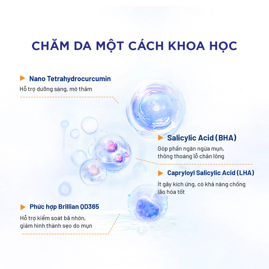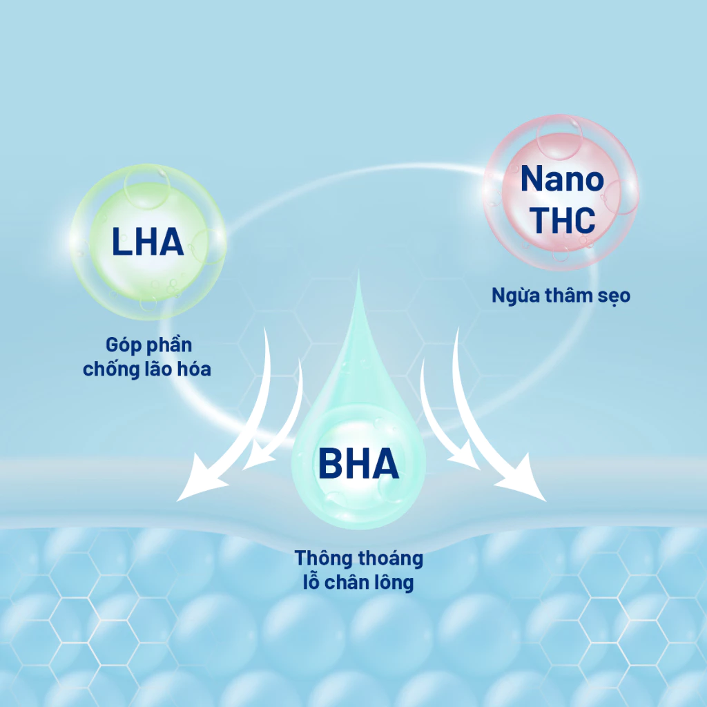 – Nano THC và Azelaic Acid hỗ trợ làm dịu da, giảm sưng viêm và ngăn ngừa mụn quay trở lại.