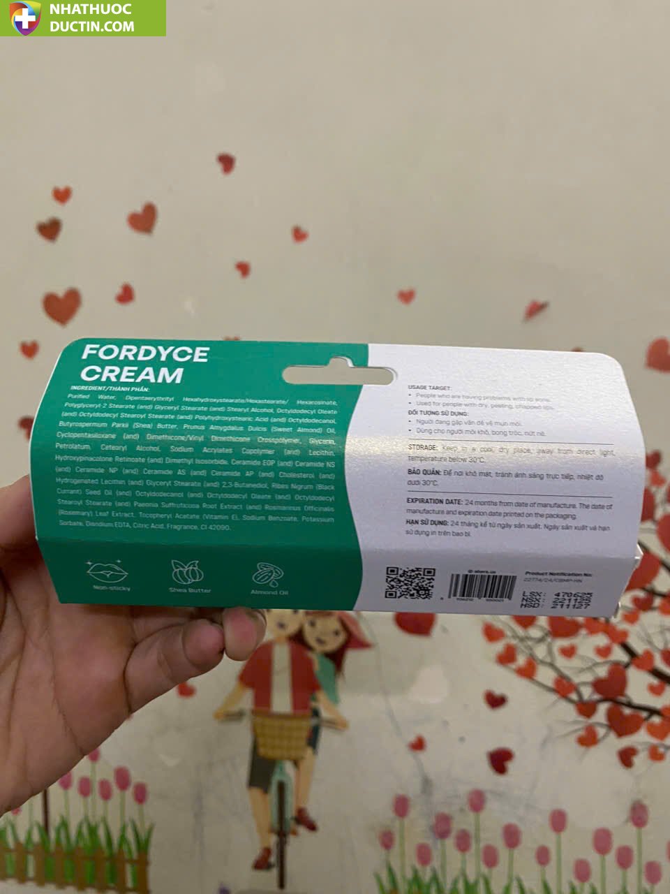 ForDyce Cream là giải pháp hoàn hảo cho các vấn đề về môi thâm, khô nứt nẻ và mụn môi. Với công thức đặc biệt từ các thành phần an toàn và hiệu quả, sản phẩm giúp làm sáng màu môi, dưỡng ẩm, giảm mụn và ngăn ngừa lão hóa, mang lại làn môi khỏe mạnh, mềm mại và căng mọng.