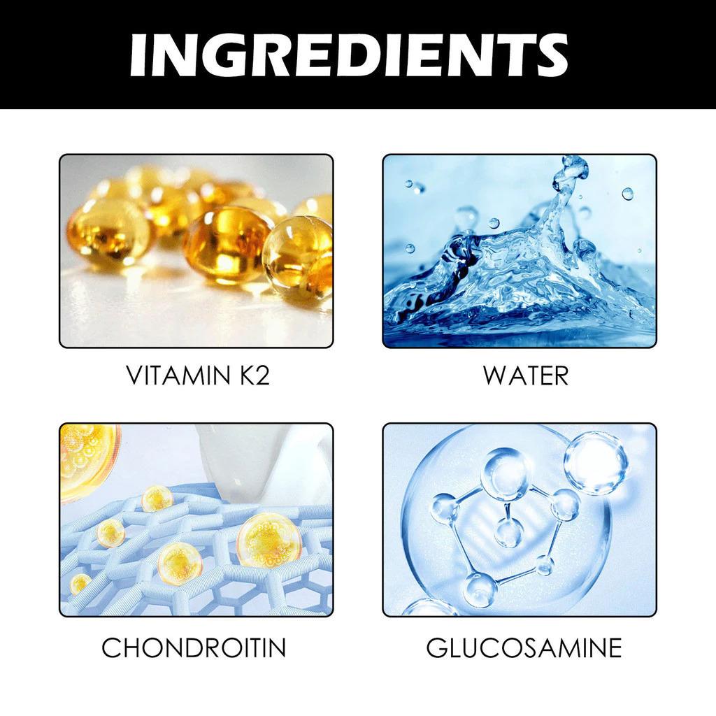 Thành phần chính: Nước, collagen, chiết xuất sụn, chondroitin, vitamin K2, (MSM/DMSO2) methanesulfonylmethane