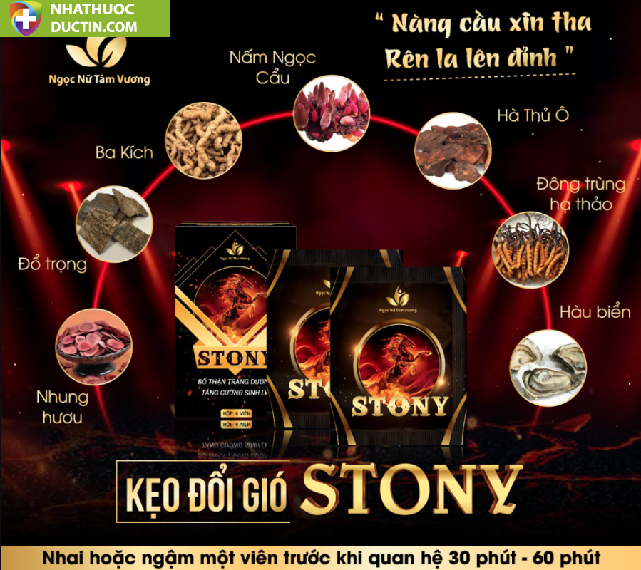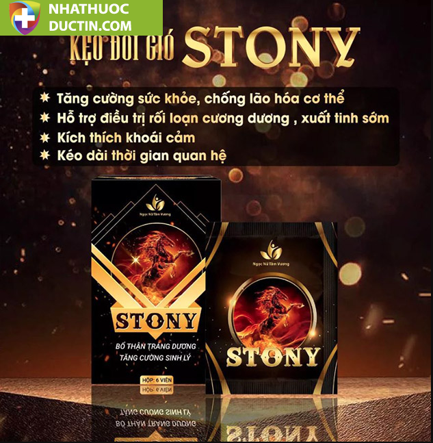 - Nam giới chỉ cần ngậm 1 viên kẹo Stony trong miệng trước khi quan hệ từ 15 đến 30 phút để kích thích sự ham muốn trong cơ thể.