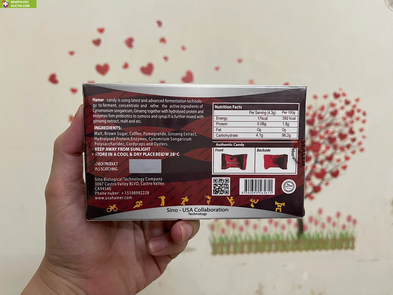 - Sản phẩm Kẹo Sâm Hamer được nghiên cứu bởi The Sino – USA Collaboration Technology và Alabama University Medical USA, sản xuất tại Malaysia với quy trình nghiên cứu kéo dài 15 năm.