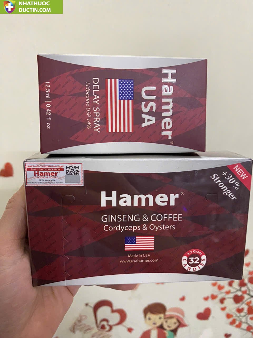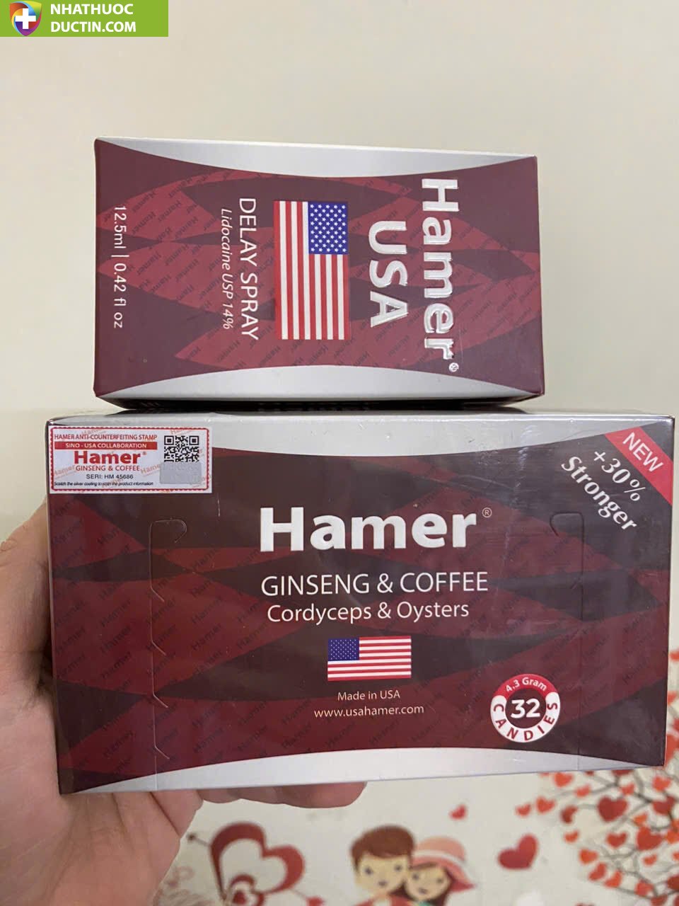 Đánh giá Kẹo sâm Hamer USA hộp 32 viên Tặng kèm chai xịt chống xuất tinh sớm Xịt Hamer