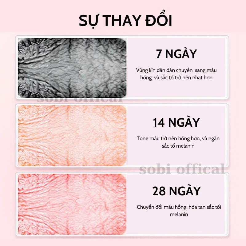 **Kết quả:** Dưỡng trắng hồng, cấp ẩm sâu và giúp vùng da tam giác trở nên mịn màng, tươi trẻ hơn sau mỗi lần sử dụng!