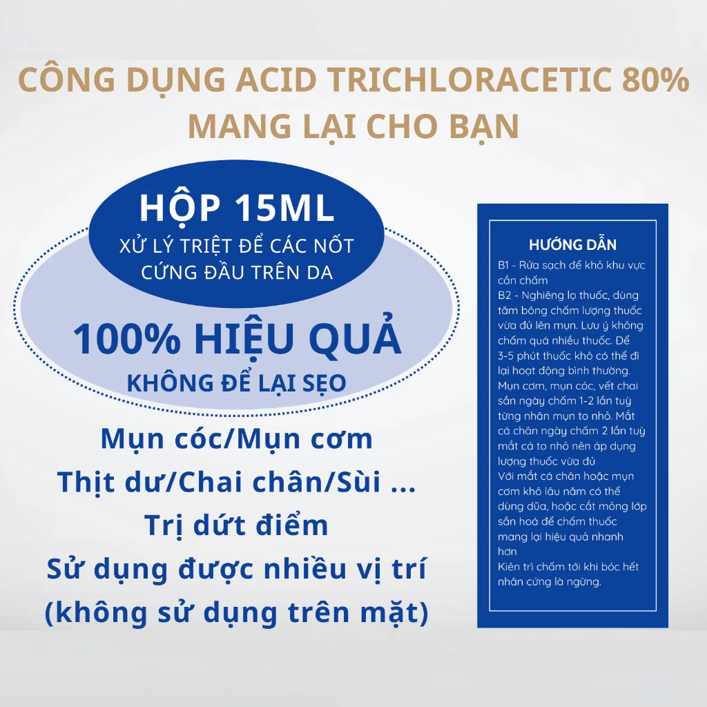 Mun coc, mun com, mun thit hiệu quả Acid Trichclorac… 80% của BVDL TPHCM chai 15ml