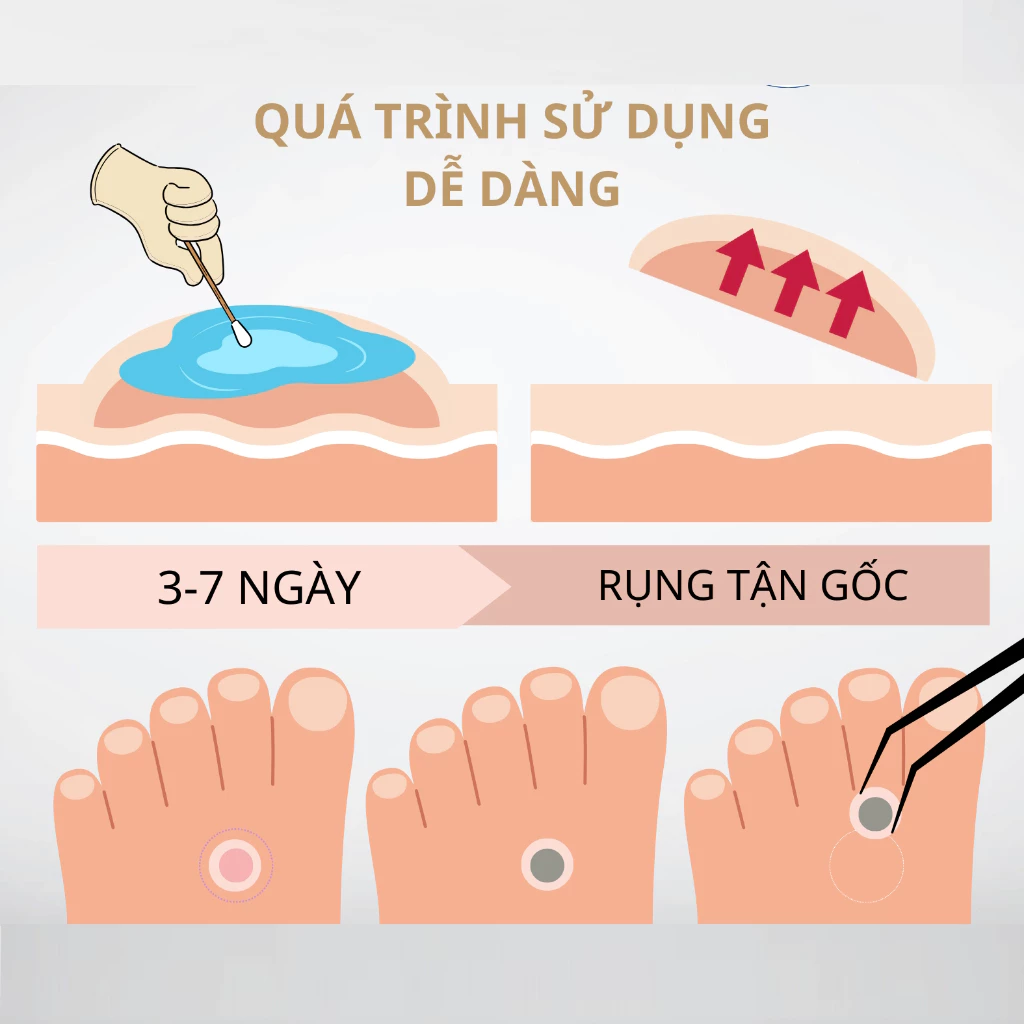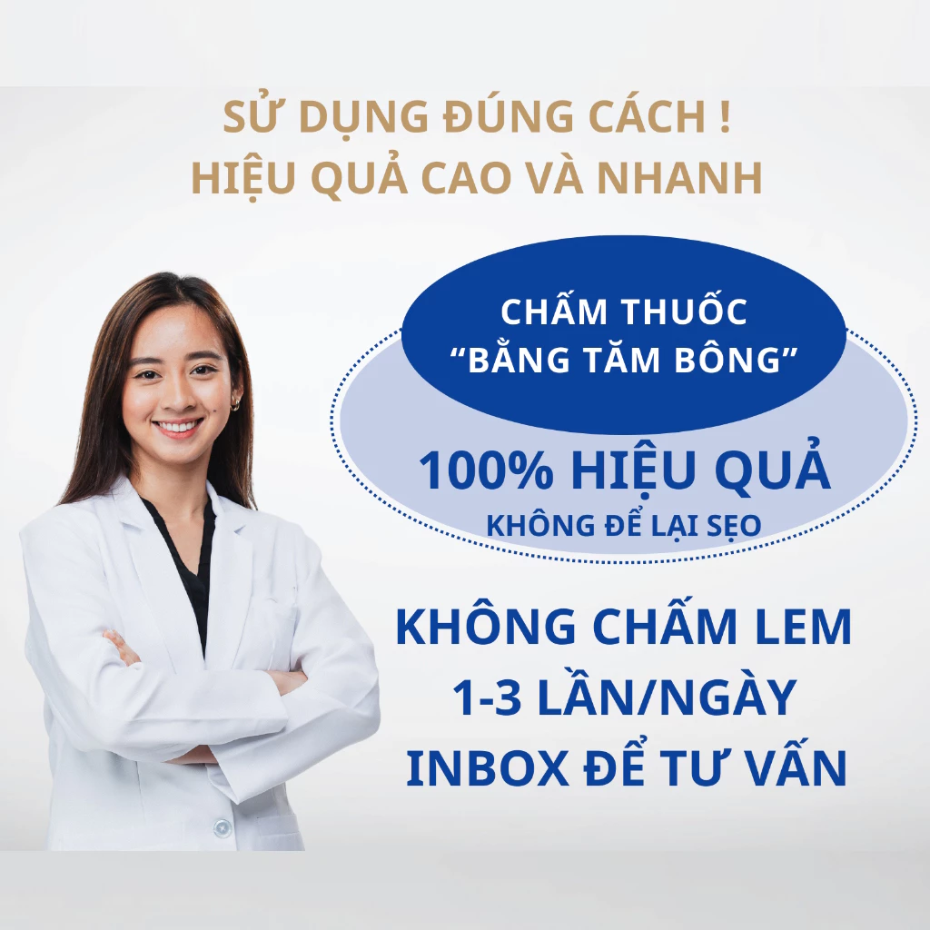 + Bước 3: Dùng tăm bông chấm nhẹ lên các nốt, tránh để lem ra ngoài, mỗi ngày chấm từ 2-3 lần.