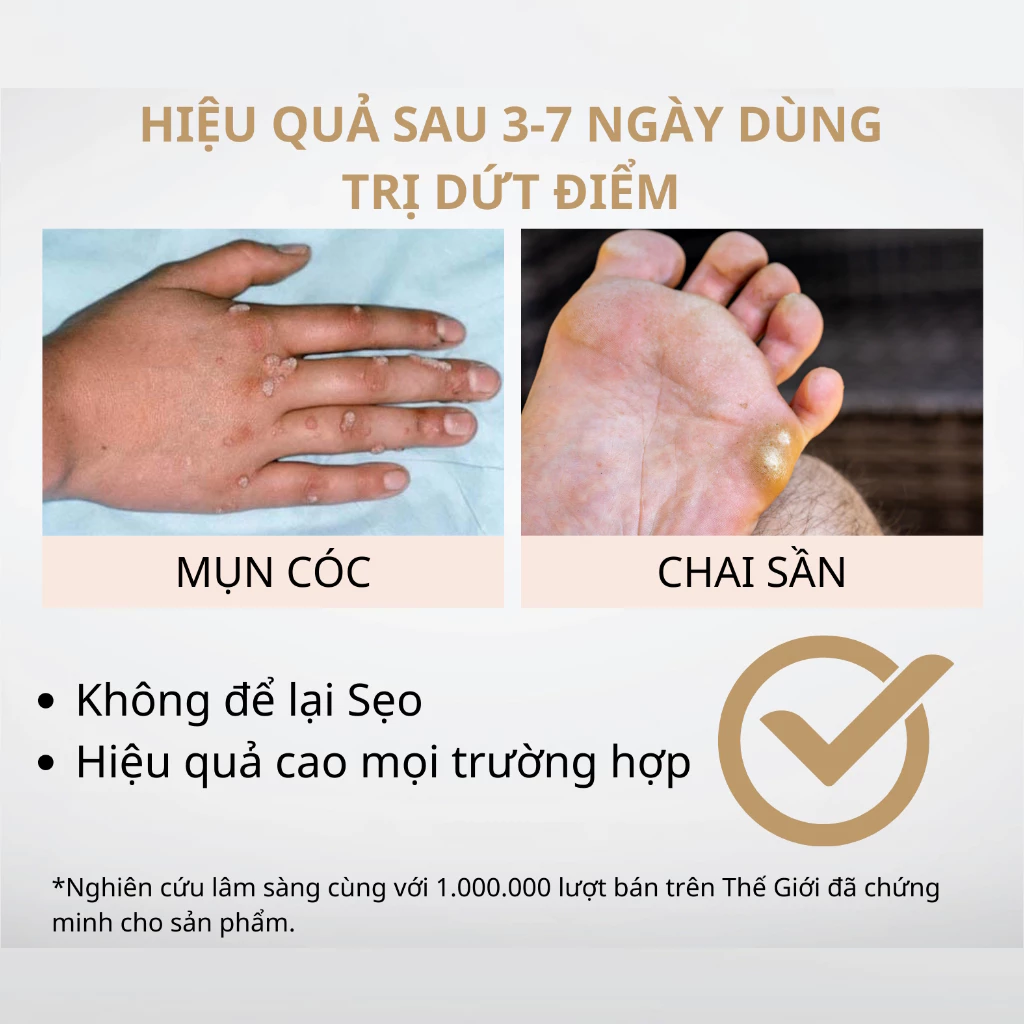 Chấm mụn cơm, mụn cóc,Vết chai sần Acid Trichloracetic 80%- Bệnh viện da liễu- TP Hồ Chí Minh.