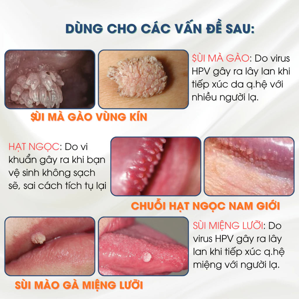 Làm sạch u nhú & nốt sần: Loại bỏ các nốt mụn cóc, mụn cơm, nốt sần sùi mào gà li ti tại vùng nhạy cảm (hạt ngọc) và trên cơ thể.