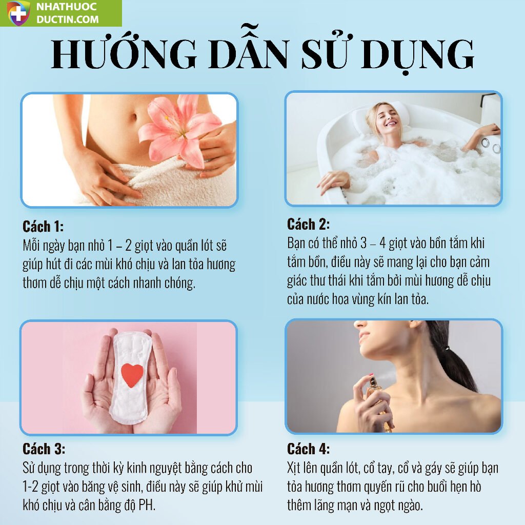 – Cách 2: Bạn có thể nhỏ 3 – 4 giọt vào bồn tắm khi tắm bồn, điều này sẽ mang lại cho bạn cảm giác thư thái khi tắm bởi mùi hương dễ chịu của nước hoa vùng kín lan tỏa.