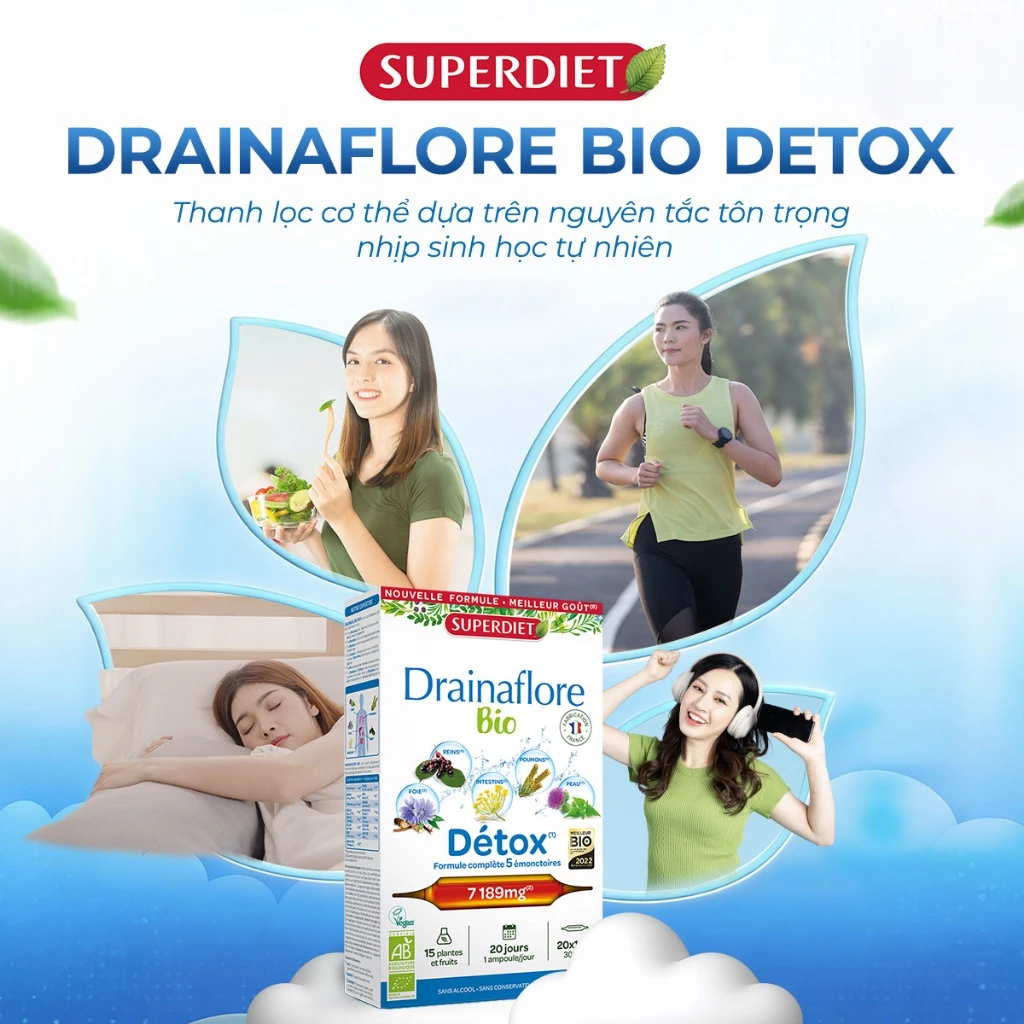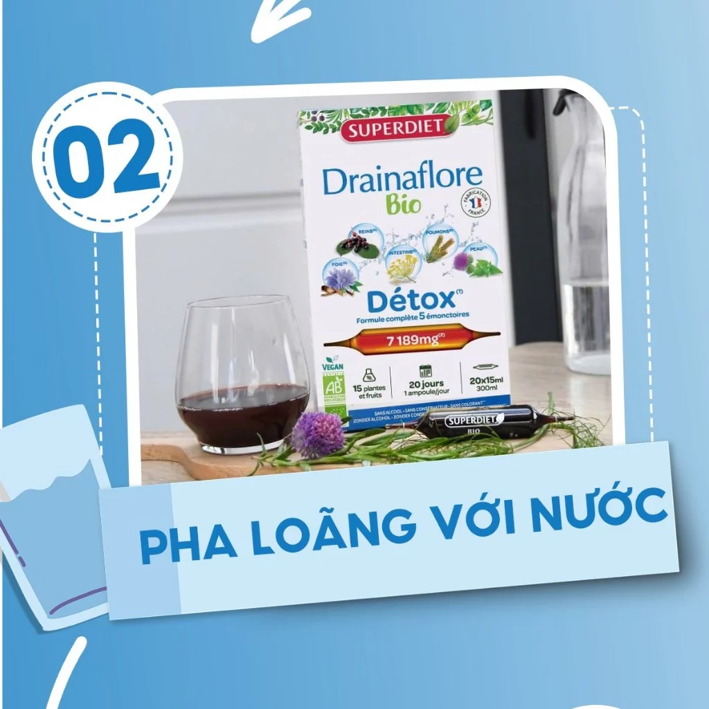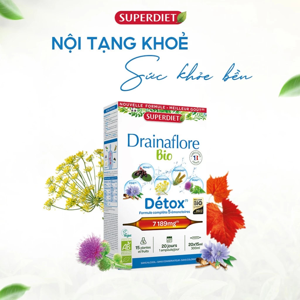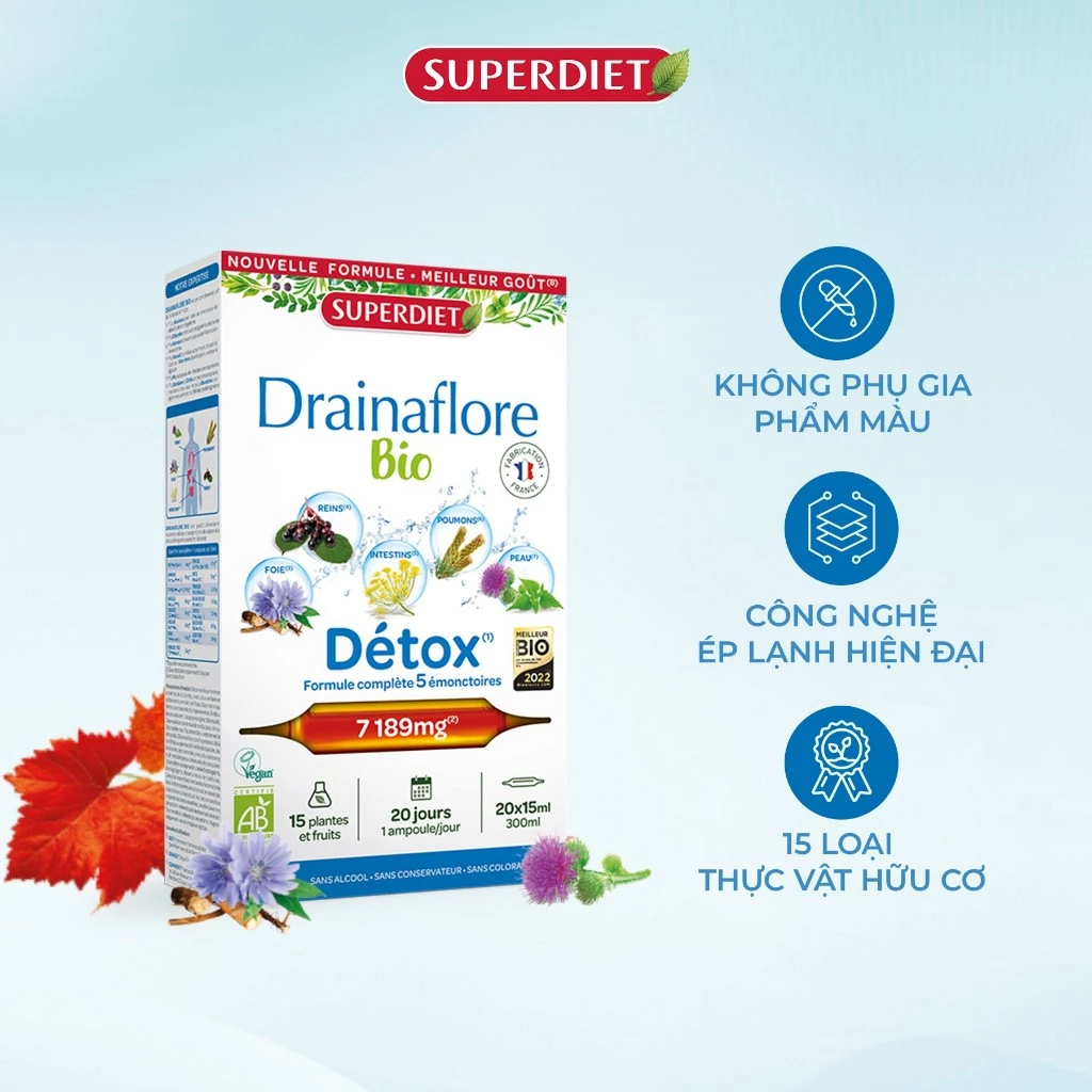 Đánh giá Nước Uống Detox Superdiet Drainaflore Bio – Hỗ Trợ Cải Thiện Chức Năng Thải Độc Của Thận 20 Ống