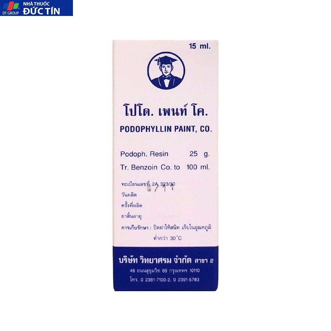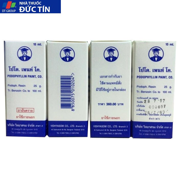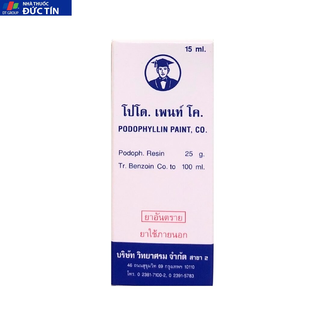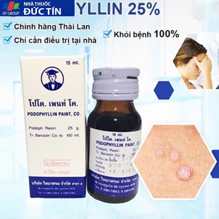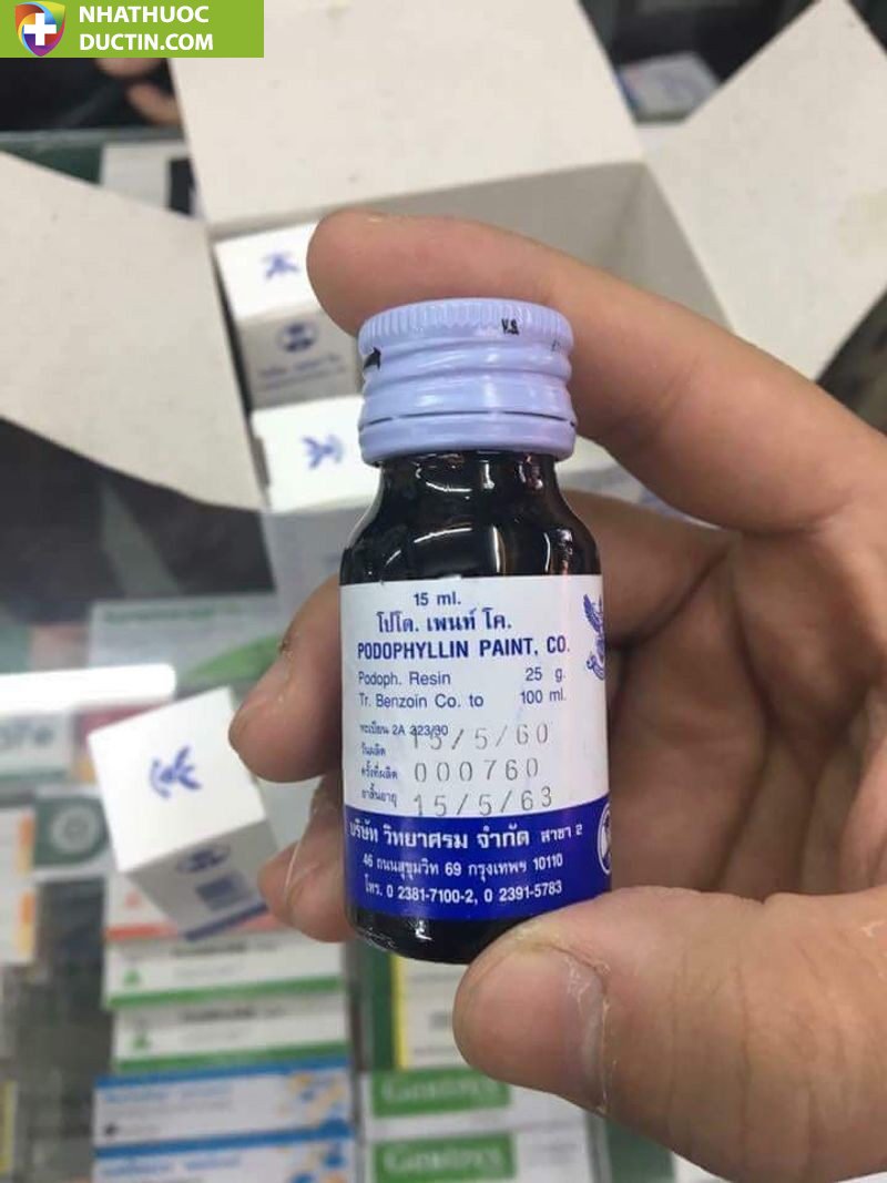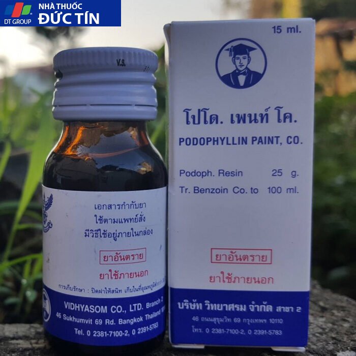 Dung dịch nhựa Podophylum dùng bôi ngoài 11,5% (trong cồn thuốc kép Benzoin 10% và Ethanol 70,5%); 25% (trong cồn thuốc kép Benzoin Ethanol).