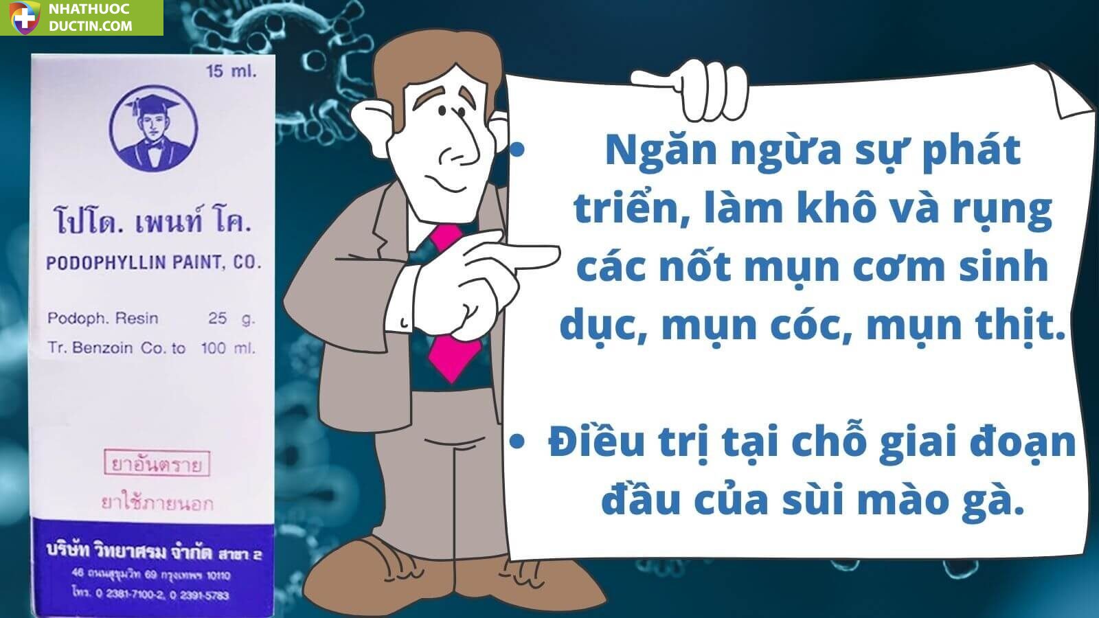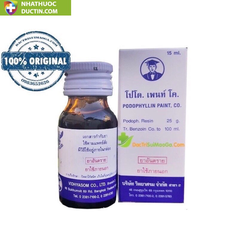 Podophylllin đánh bay sùi mào gà mụn cơm mụn cóc Thái Lan chính hãng ( che tên sp)