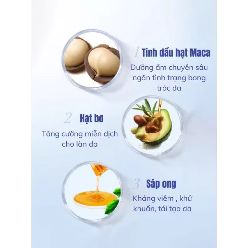 – Niacinamide, panthenol và ceramide, giúp dưỡng ẩm sâu, làm dịu da và hỗ trợ phục hồi tổn thương do á sừng.