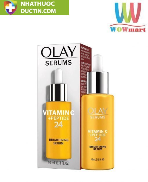 Tinh chất Olay Vitamin C + Peptide 24 Serum làm sáng và cấp nước cho làn da của bạn. Huyết thanh này, dành cho da khô hoặc da dầu, được pha chế với các thành phần mạnh mẽ như Vitamin C, Vitamin B và Axit Lactic.