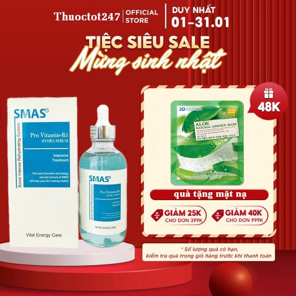 ✔ Tinh chất dưỡng ẩm Serum Smas HA và B5 cung cấp độ ẩm chuyên sâu giúp da tươi tắn, khỏe mạnh