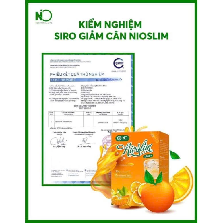 – Siro Nioslim có vị cam thanh mát dễ sử dụng