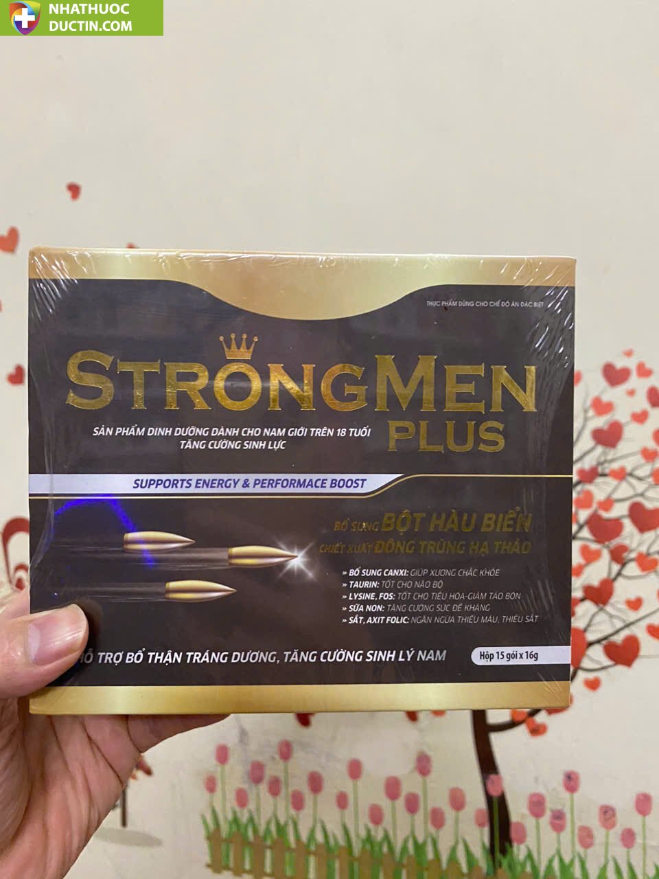 Strong Men Plus là một dòng sản phẩm thực phẩm bảo vệ sức khỏe dành cho nam giới, tập trung vào việc tăng cường sinh lý, hỗ trợ bổ thận, tráng dương, cải thiện các vấn đề như yếu sinh lý, xuất tinh sớm, rối loạn cương dương, và tăng cường ham muốn, đồng thời bồi bổ toàn diện thể trạng, xương khớp, não bộ và sức đề kháng. Sản phẩm thường có dạng sữa hoặc viên nang, chứa các thành phần tự nhiên như bột hàu, cao ba kích, nhân sâm, cùng các vitamin và khoáng chất thiết yếu.