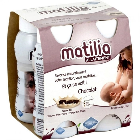 Sữa cho bà mẹ sau sinh Matilia Allaitement – Pháp vị socola là sản phẩm xách tay chính hãng từ Pháp. Sữa Matilia là đồ uống từ sữa lên men được khử trùng bằng công nghệ UHT với hương vị thơm ngon và có khả năng cung cấp các chất dinh dưỡng cho bà mẹ đang cho con bú. Một lốc sữa Matilia bao gồm 4 chai sữa với dung tích 200ml/ chai.