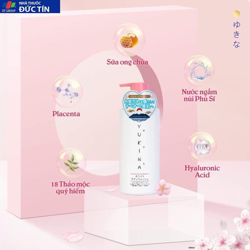 Yukina White Body Wash – sữa tắm trắng tế bào gốc trẻ hoá làn da số 1 Nhật Bản. Ngoài việc tắm trắng mịn màng, an toàn thì làn da của bạn sẽ được tái tạo và trẻ hoá nhờ tế bào gốc placenta. Đối với các trường hợp bị viêm lỗ chân lông, mụn thâm với nứt nẻ da sử dụng sữa tắm Yukina thì sẽ cảm nhận rõ rệt sự thay đổi sau 1 thời gian sử dụng.