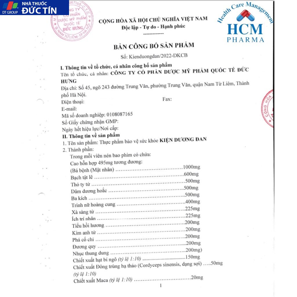 1. Thành phần của Tăng cường sinh lý nam, bổ thận nam KIỆN DƯƠNG ĐAN: xem trên ảnh số 2