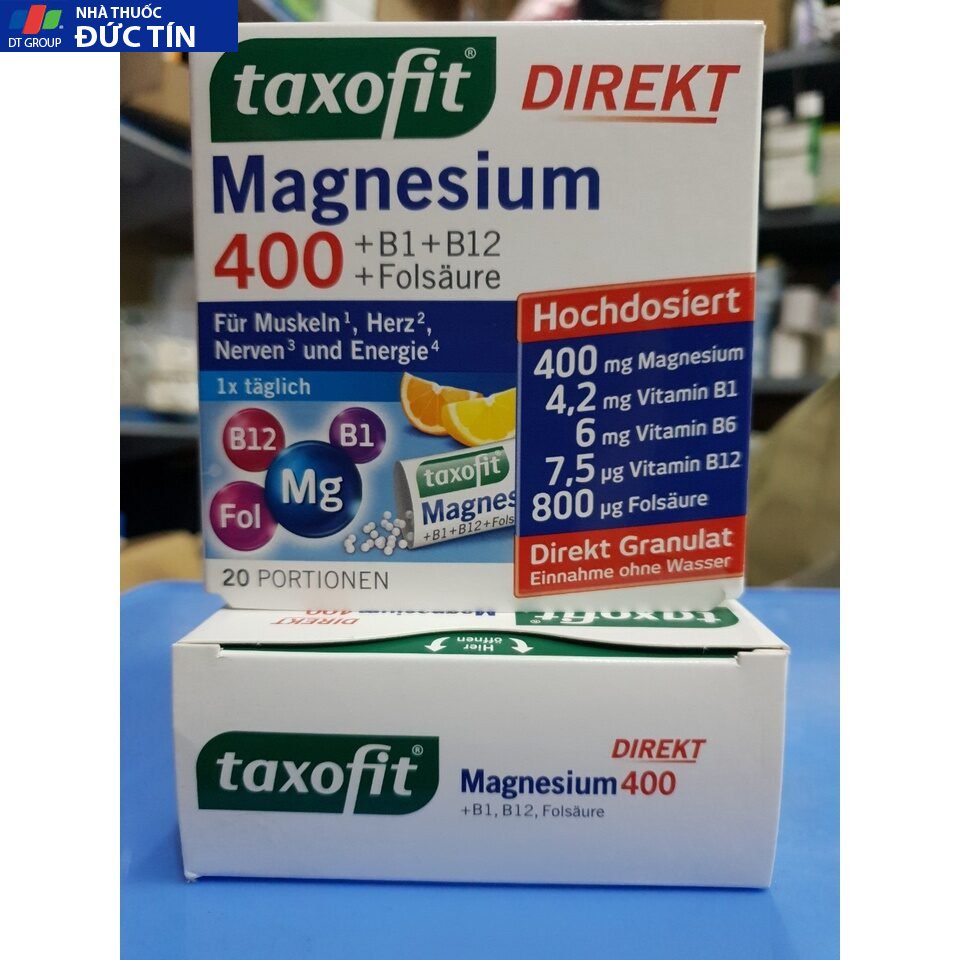 Taxofit Magnesium 400 + B1 + B6 + B12 + Folsaure 800 hộp 20 gói của Đức