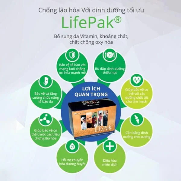 LifePak cung cấp liều lượng đáng kể các vitamin chống oxy hóa, cofactors khoáng, hỗn hợp caroten phổ rộng, hơn 20 flavonoid và các chất chống oxy hóa
