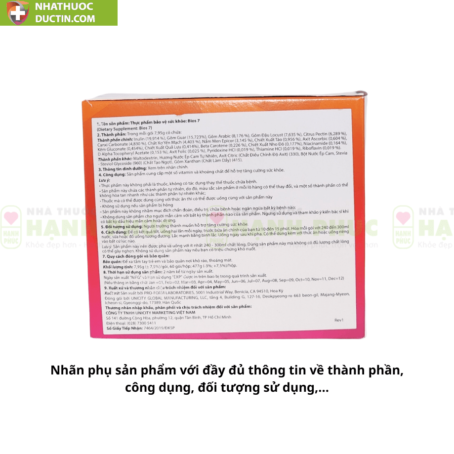 Trên đây chúng tôi chỉ nêu ra một số thành phần chính của sản phẩm. Ngoài ra, còn rất nhiều thành phần khác có trong Bios 7 bạn có thể tìm đọc trên bao bì sản phẩm để hiểu rõ hơn.