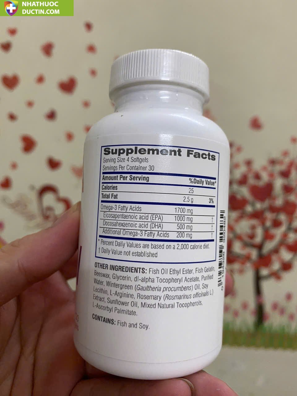 Thành phần khác; Gelatin từ cá, Sáp ong, Glycerin, DL-Alpha Tocopheryl Acetare, Nước tinh khiết, Dầu Lộc Đề xanh, Lecithin đậu nành, L-Arginine, chiết xuất cây Hương Thảo, Dầu Hướng Dương, hỗn hợp Tocopherols tự nhiên, L-Ascorbyl Palmitare.